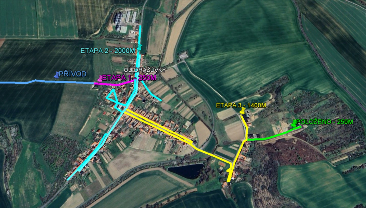 Projektové podklady k výstavbě optické sítě (internet a TV) v obci Dražůvky.